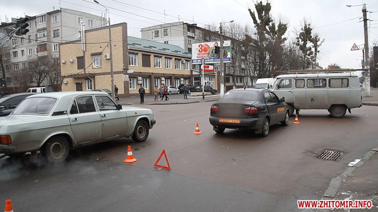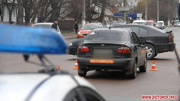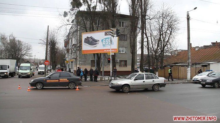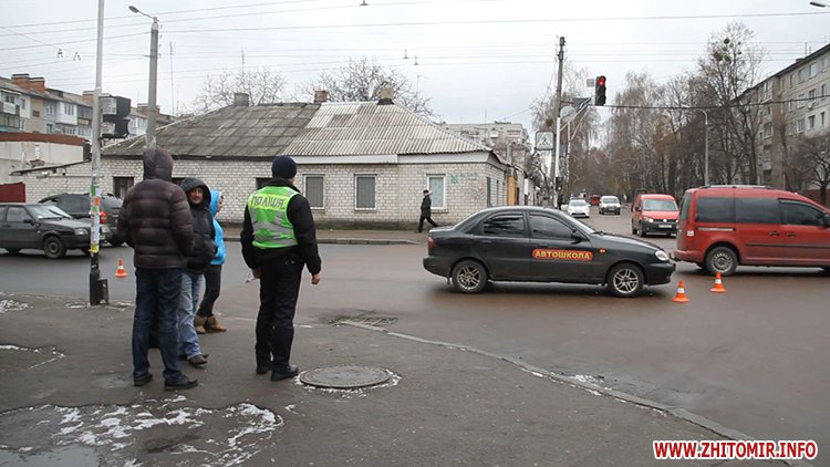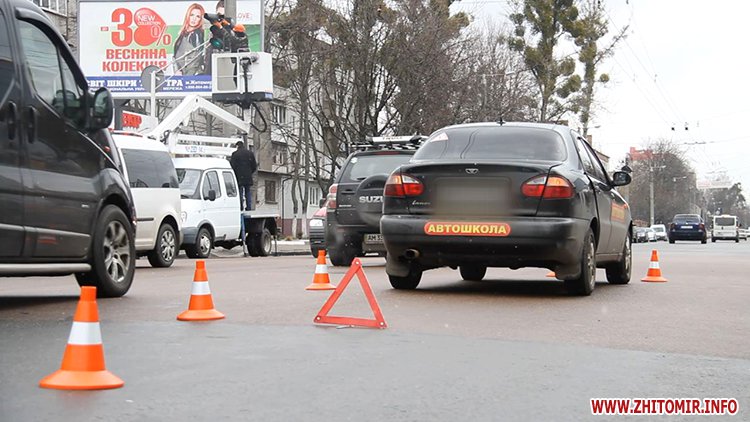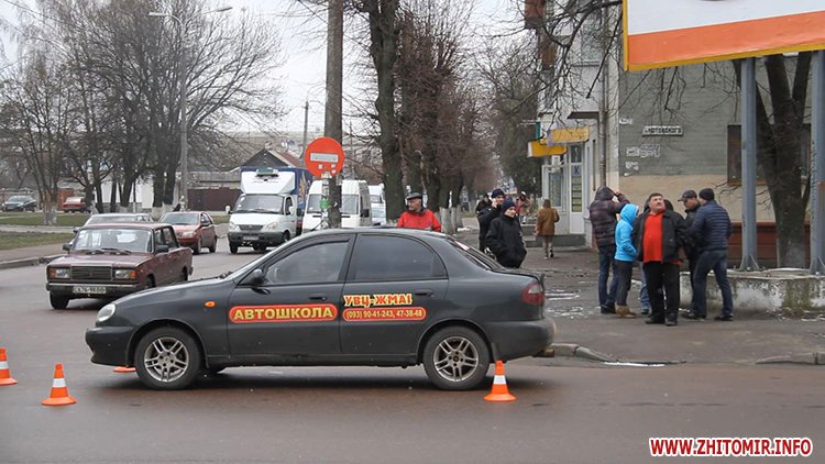 Вранці 25 березня на перехресті вулиці Грушевського та вулиці Хлібної автомобіль марки Lanos, за кермом якого знаходився працівник однієї з автошкіл Житомира, збив пішохода. Легковик рухався по вулиці Грушевського (колишня вул. Котовського) в бік вулиці Князів Острозьких (колишня вул. Шелушкова).