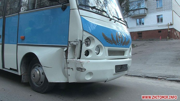 Вранці 26 березня в Житомирі, на вулиці Короленка пасажирський автобус I-VAN зіштовхнувся з легковиком Daewoo Sens. Автобус без пасажирів і легковий автомобіль рухались у попутному напрямку – по вулиці Короленка в бік вулиці Соснової.