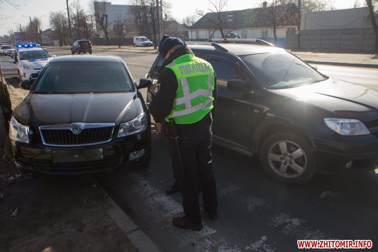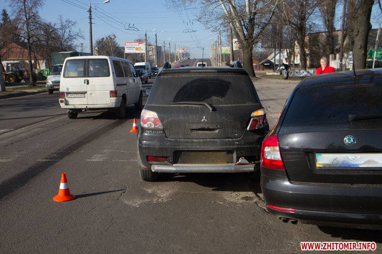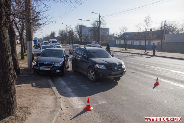 28 березня близько 9 години ранку в районі нафтобази на Київському шосе у Житомирі трапилася ДТП за участю автомобілів Mitsubishi та Skoda.