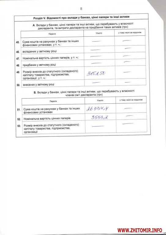 Взносы Александра Фещенко в уставной капитал предприятий составляют 315 тыс. 250 грн. У членов семьи на банковских счетах находится 26 тыс. 334,4 грн и есть ценные бумаги на сумму 3 тыс. 553,2 грн.