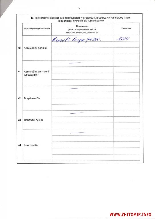У заместителя мэра собственного автомобиля нет, у членов семьи – Renault Kangoo 2004 г.в.