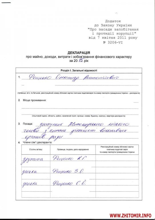 «21 марта 2016 в Житомирском городском совете начато проведение проверки, предусмотренной Законом Украины «Об очищении власти»: заместителя городского головы по вопросам деятельности исполнительных органов совета – Фещенко Александра Анатольевича», - говорится в сообщении на сайте.