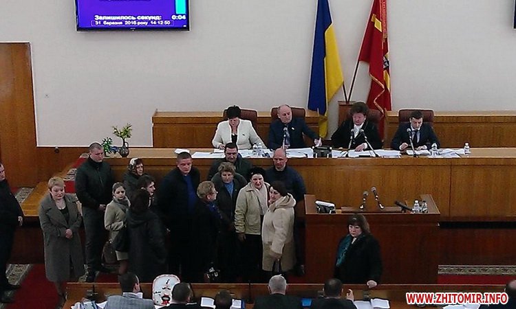 Кілька десятків людей заблокували роботу сесії Житомирської облради після рішення про звільнення директора комунальної установи «Обласна база спецмедпостачання».