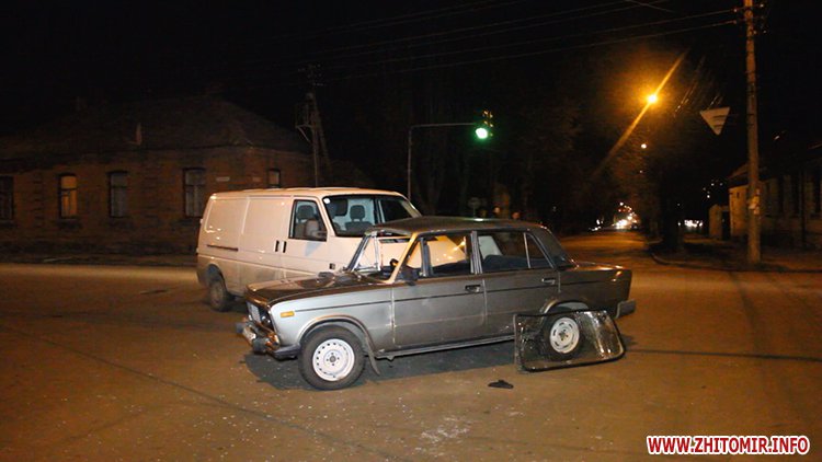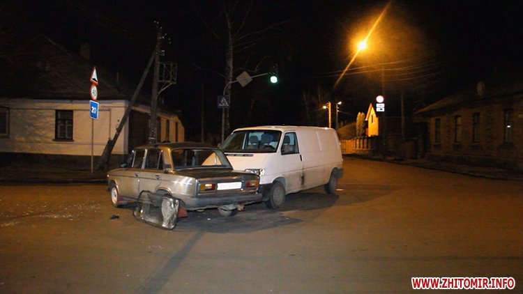 В Житомире 31 марта на регулируемом перекрестке столкнулись минивэн Volkswagen Transporter и ВАЗ.