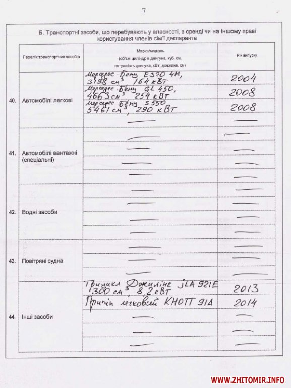 В собственности Лагуты есть прицеп «Циклон-8169», 1996 году выпуска, у членов семьи – три легковых автомобиля: Mercedes-Benz Е 320 4М с объемом двигателя 3198 куб.см, 2004 г.в.; Mercedes-Benz CL 450 с объемом двигателя 4663 куб.см, 2008 г.в.; Mercedes-Benz S 550 с объемом двигателя 5461 куб.см, 2008 г.в.; трицикл Джилинг JLA 921 Е с объемом двигателя 300 куб.см. 2013 г.в. и прицеп легковой КНОТТ-91 А, 2014 г.в.