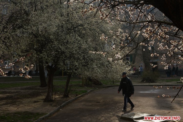 Житомиряни вже тиждень насолоджуються довгоочікуваним весняним теплом. На вулицях почали розквітати дерева та зеленіє трава.
