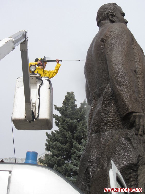 Как сообщал Житомир.info, в 2014 году коммунальщики отмывали от краски памятник Пархоменко в Житомире.