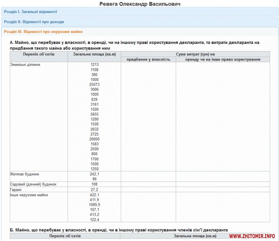 Ревеге принадлежит 22 земельных участка: к 21 участку общей площадью 7,5 га за прошедший год добавился еще одни – 1250 кв.м. У нардепа есть два жилых дома – 242,1 кв.м.и 86 кв.м., дачный дом – 108 кв.м., гараж – 27,2 кв.м. и шесть объектов другого недвижимого имущества общей площадью 2566,6 кв.м.