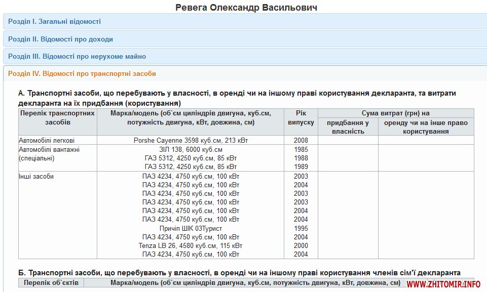 В собственности нардепа есть легковой автомобиль Porsche Cayenne 2008 г.в, три грузовых автомобиля, девять автобусов (восемь ПАЗ 4234 и Tenza LB 26) и прицеп «Турист».
