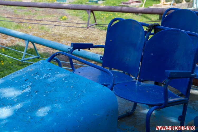 У житомирському парку Гагаріна працівники комунального підприємства 25 квітня фарбують гойдалки і готуються до нового сезону.
