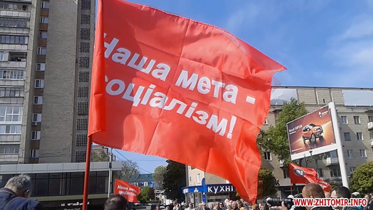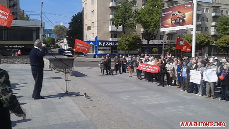 1 травня біля житомирського Соборного майдану близько сотні пенсіонерів зібралися на мітинг на честь Міжнародного дня солідарності трудящих і Великодня. Приїхав і лідер забороненої Компартії Петро Симоненко.