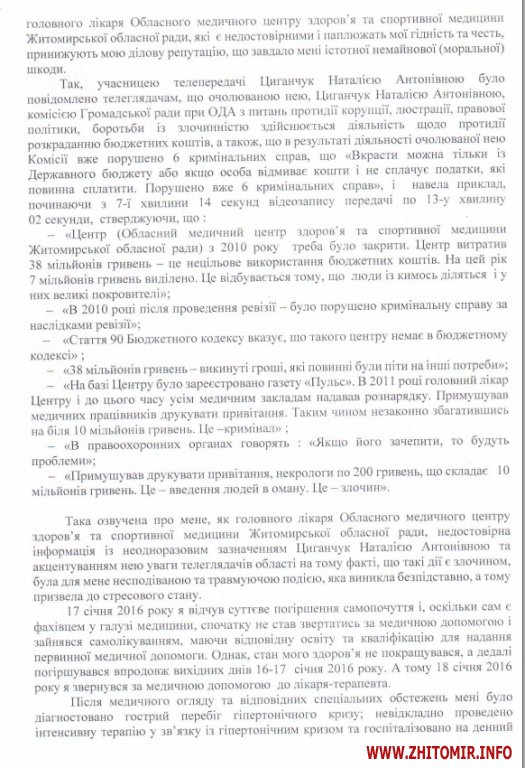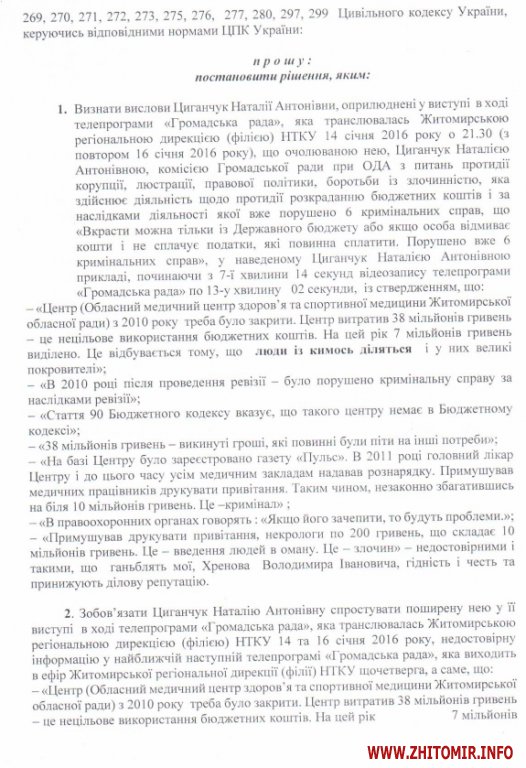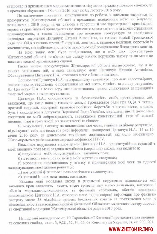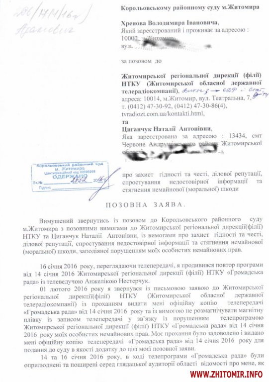У розпорядженні Житомир.info є позовна заява по справі, яка розглядається в Корольовському районному суді м.Житомира.