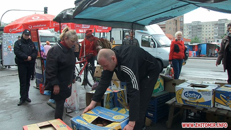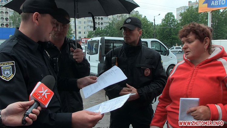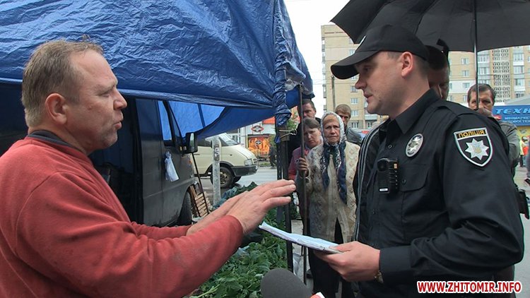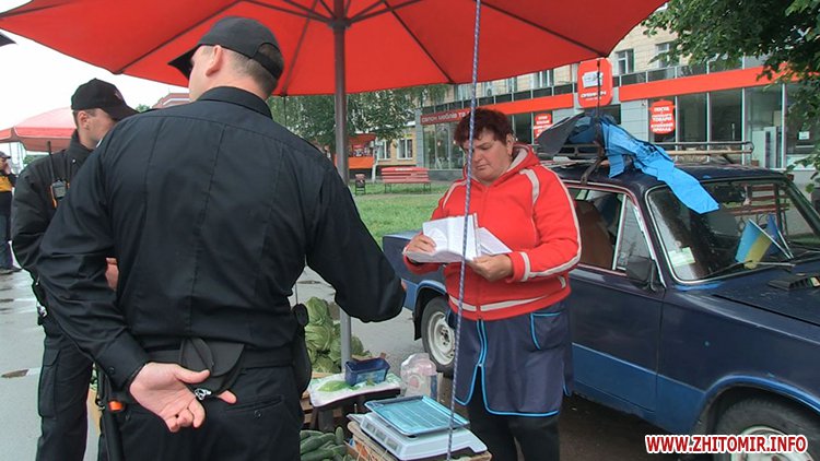 «Є довідки з сільських рад про те, що в них є земельні ділянки і вони вирощують самі, тобто не перекупають, не спекулюють, і рішення від 25.03.2010 року: «Дозволена торгівля продукцією сільськогосподарського та власного виробництва за виключенням товарів, що швидко псуються, тобто ковбаса і молочні продукти за адресою проспект Миру, 8-10», - зачитує документ інспектор патрульної поліції Житомира Максим Линник.