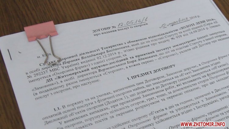 В. о. начальника головного управління Держгеокадастру у Житомирській області Сергій Музиченко каже, що укладено новий договір про охорону приміщення.
