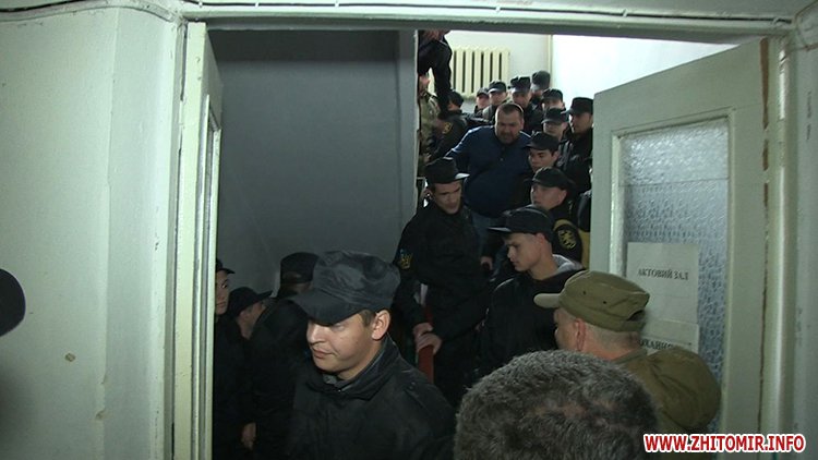 Військові вирішують зайти в приміщення управління Держгеокадастру. На вході їх намагались зупинити охоронці приватної фірми, але це не зупинило АТОшників. Піднявшись на четвертий поверх в актову залу, військовослужбовці виявили, що вона тимчасово переобладнана на казарму для представників приватної охоронної фірми «Золоті леви- 2014». Військові на підвищених тонах наказали людям в чорній формі залишити приміщення.