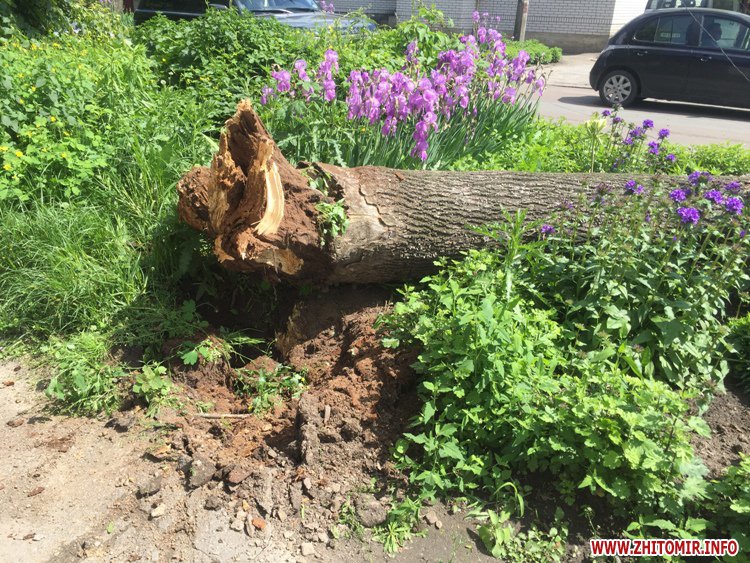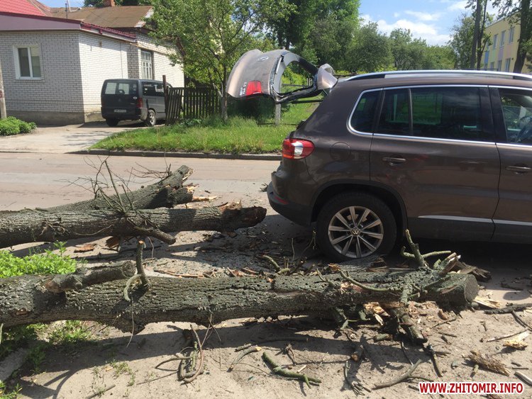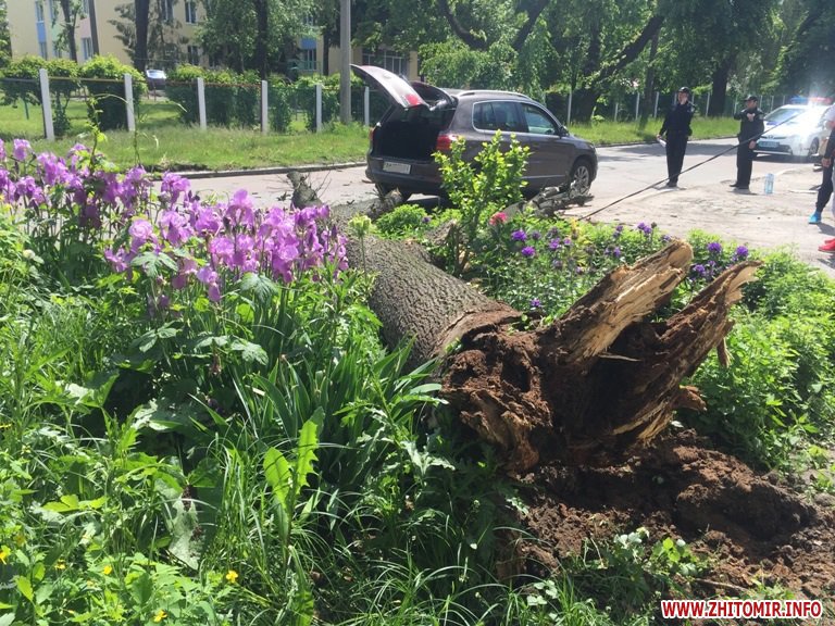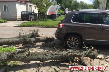 У Жиитомирі 21 травня на вулиці Довженка, 6 дерево впало на автомобіль та травмувало людину.