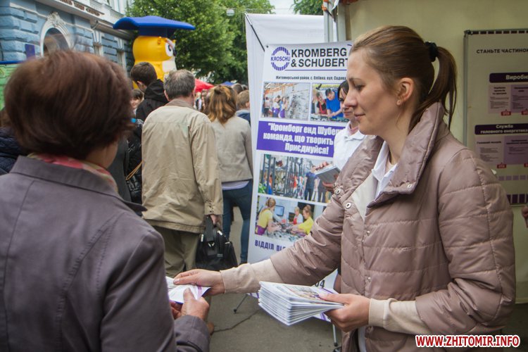 «Кромберг енд Шуберт» був одним з учасників заходу. Інформаційний тент компанії зібрав багато зацікавлених житомирян. Люди спілкувалися з представниками компанії, розпитували про умови роботи та зарплатню на заводі, брали з собою флаєри та візитівки. Було видно, що про компанію в Житомирі знають, і працювати в ній для житомирян – це престижно й вигідно.
