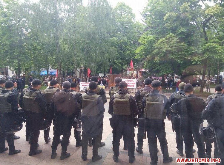 Як повідомляв Житомир.info, зранку 25 травня житомирська поліція попередила про масові заходи біля кондитерської фабрики. Пообідньої пори територію фабрики оточили близько сотні поліцейських. Пізніше стіна правоохоронців вишикувалася під будівлею ГУ Нацполіції. Колишній в. о. начальника ГУ Нацполіції в Житомирській області Валерій Рудик пропрацював на посаді рік, а 24 травня 2016 року заявив про те, що працює радником міністра внутрішніх справ.