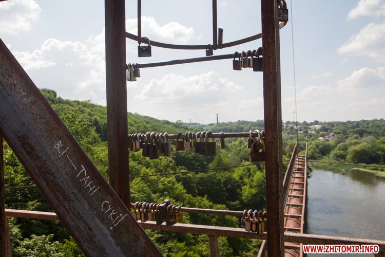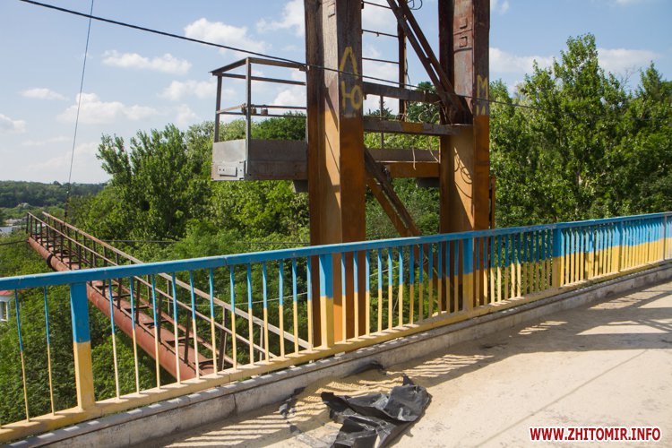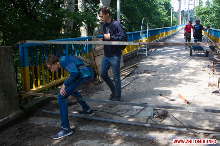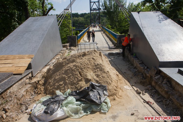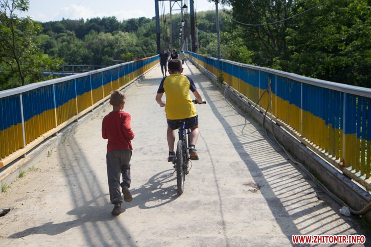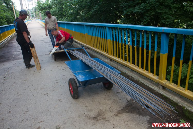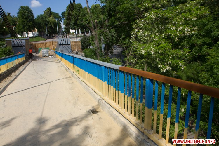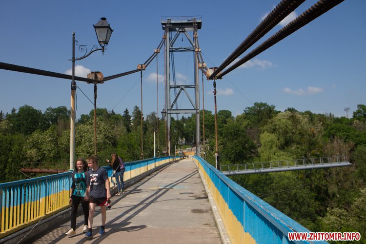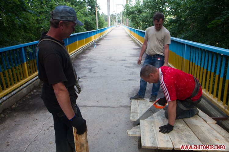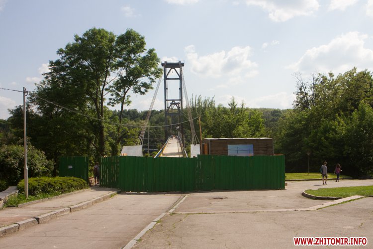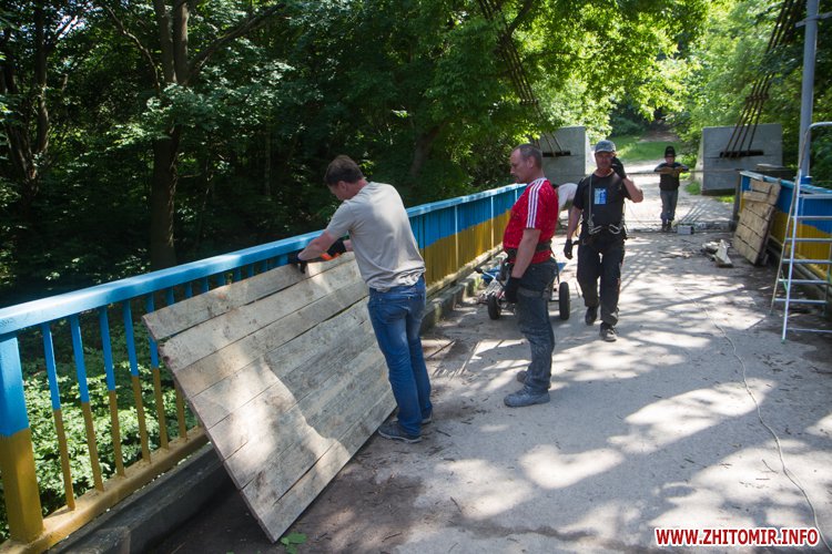 Як повідомляв Житомир.info, 11 травня в житомирському парку Гагаріна комунальники дерев’яними дошками збираються закрити пішохідний міст через річку Тетерів на реконструкцію.