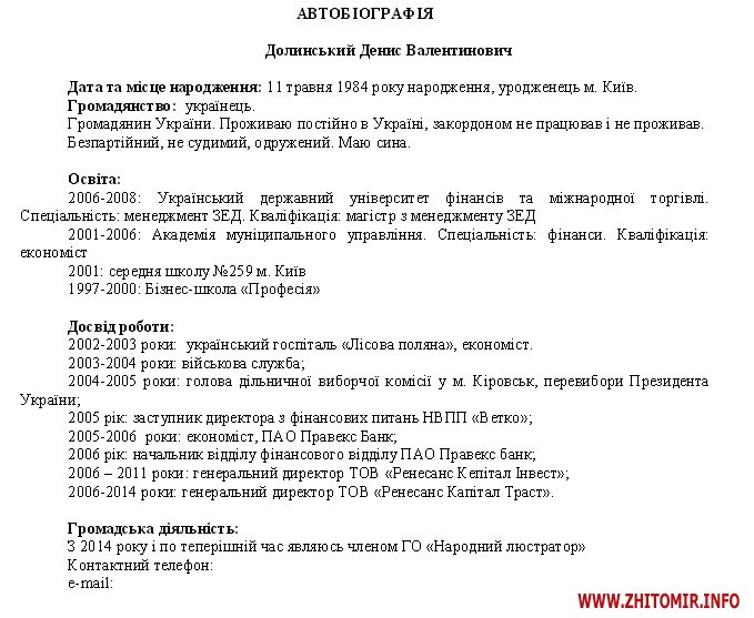 Співвласник ТДВ «ЖЛ» Денис Долинський хоче бути членом Ради громадського контролю при НАБУ від громадської організації «Народний люстратор».