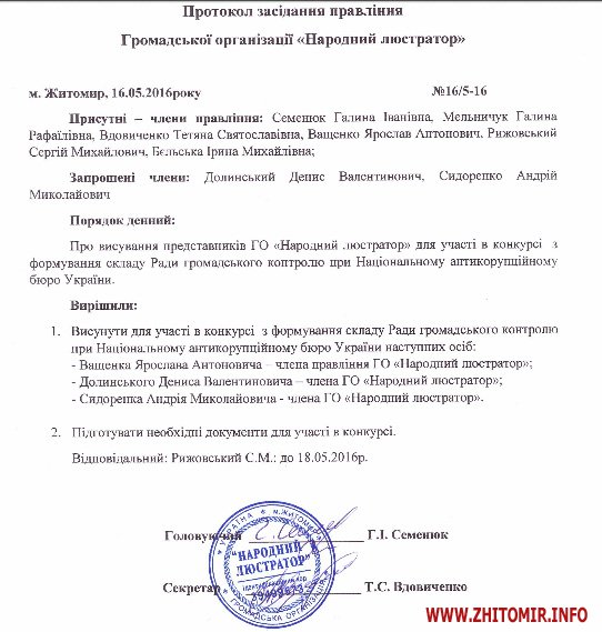 Як повідомляв Житомир.info, прийом документів претендентів на участь у відкритому конкурсі з обрання нового складу Ради громадського контролю при НАБУ тривав з 10 по 19 травня 2016 року.