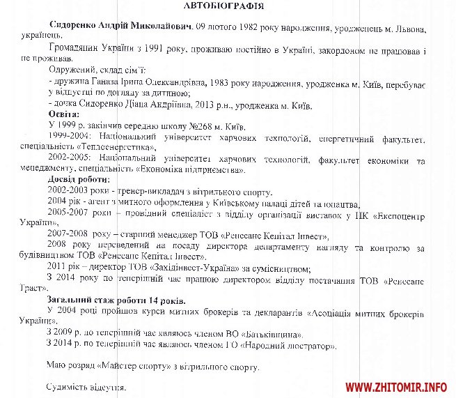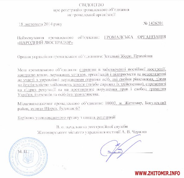 Він є у списку кандидатів до складу РГК, які опубліковані на сайті НАБУ. Громадська організація «Народний люстратор» зареєстрована в Житомирі 18 листопада 2014 року, її юридична адреса співпадає з адресою кондитерської фабрики: м.Житомир, вул.Щорса, 67.