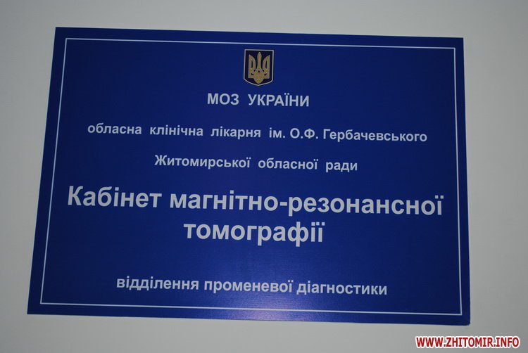 9 червня у приміщенні Житомирської обласної клінічної лікарні ім. О. Ф. Гербачевського відбулося офіційне відкриття роботи магнітно-резонансного томографа.