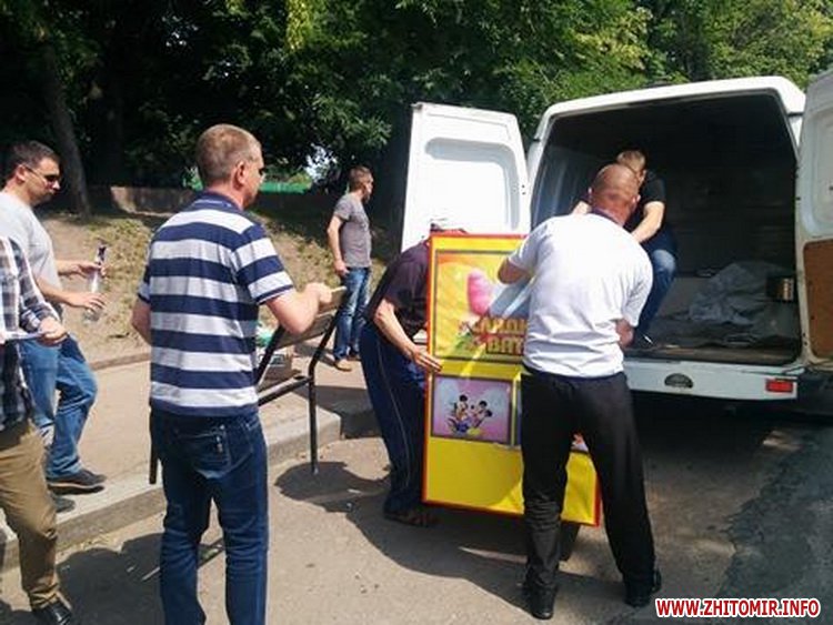 «Інспектори забирають апарати, які виготовляють солодку вату та лоточки, де продаються дитячі іграшки. Демонтували один холодильник з морозивом і попередили власників про те, що протягом 15 хвилин вони мають самі прибрати свої речі. Якщо вони цього не зроблять самі, то приїдуть комунальники і заберуть решту. Всі продавці спокійно поставилися до такого рейду», – розповів журналіст Житомир.info.
