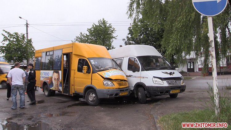 На вулиці Вітрука в Житомирі, недалеко від перехрестя з вулицею Шевченка, 11 червня близько 16.30 сталася ДТП за участю двох маршрутних таксі.