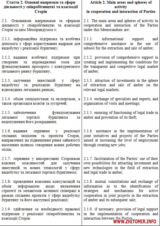 «Голова ОДА Сергій Машковський зазначив, що на Житомирщині склалася парадоксальна ситуація: «Маємо багато покладів бурштину, але в той же час ці райони найбільш депресивні. Саме в цих районах люди повинні використовувати наявний ресурс на розвиток громад. Біржа – це ще один крок до легалізації видобутку бурштину. Ми перші в Україні, хто підписує меморандум з міжнародною біржею. Для нас важливо, щоб він не залишився на папері як документ про наміри, а став основою подальших дій легалізації видобутку бурштину», - пише прес-служба ОДА.