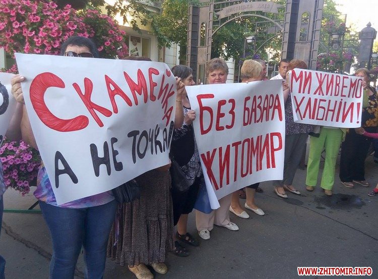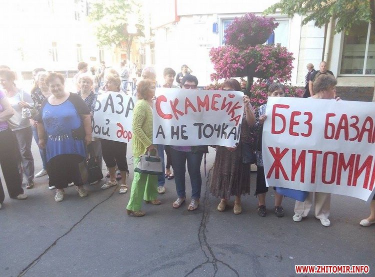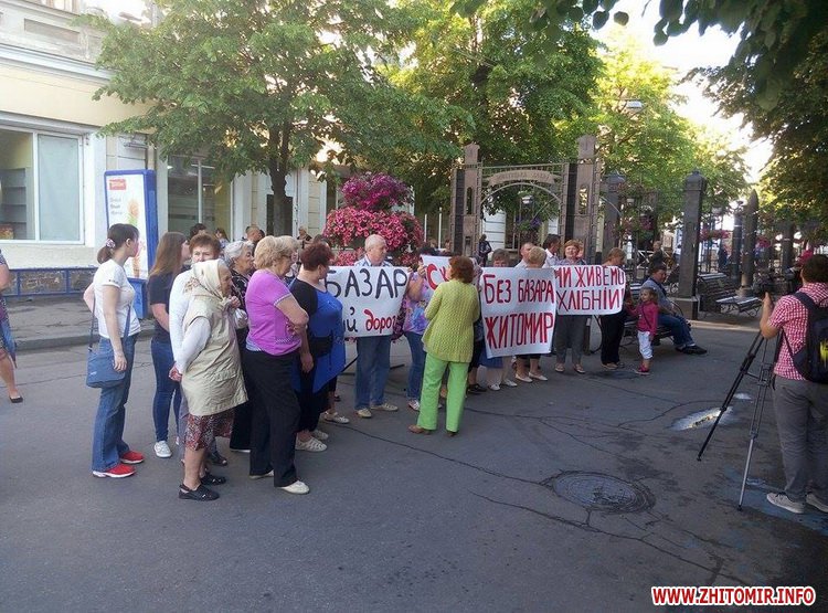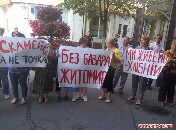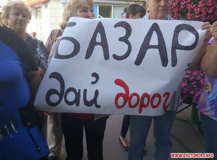 Зранку 16 червня біля Житомирської міської ради зібралися близько 20 людей с плакатами проти вуличної торгівлі.