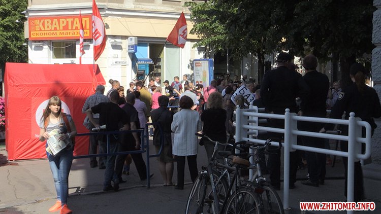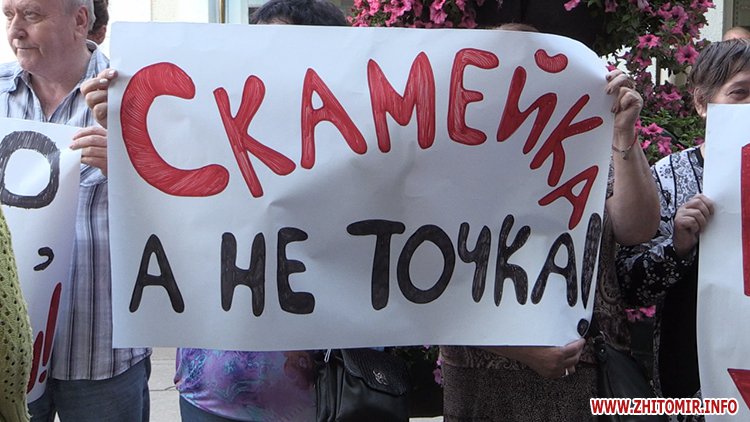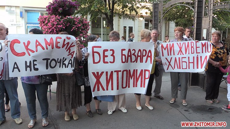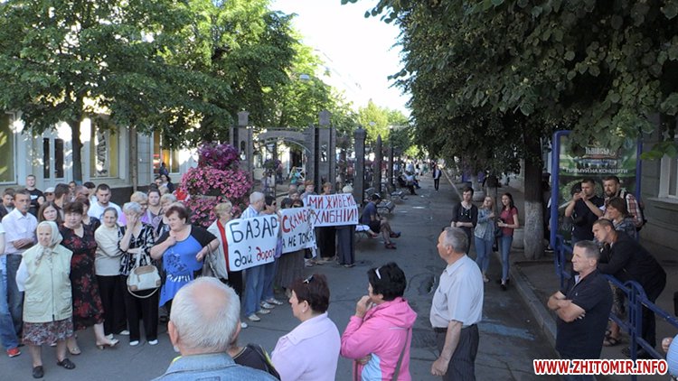 Зранку, 16 червня, під стінами Житомирської міської ради почали збиратись люди. В руках у них були плакати з написами «Без базара Житомир», «Скамейка, а не точка!» та «Базар, дай дорогу». Протестувальники кажуть, усі мешкають на вулиці Хлібній і прийшли, щоб підтримати дії міської влади, яка «зачистила» вулицю від стихійної торгівлі.