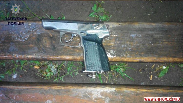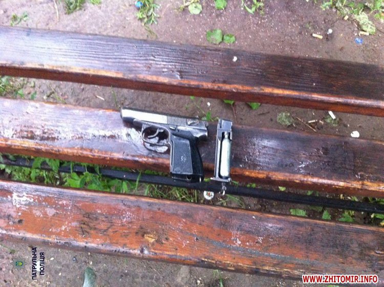 «19 червня о 23:15 на лінію 102 надійшло повідомлення про те, що по вул. Покровська, 19 біля кафе «Кармен» невідома особа чоловічої статі погрожує перехожим застосуванням зброї. Патрульні поліцейські 118 екіпажу швидкого реагування 3-ої роти за орієнтуванням наздогнали і затримали чоловіка. При втечі особа скинула зброю на сміття», - йдеться у дописі на сторінці патрульної поліції Житомира.