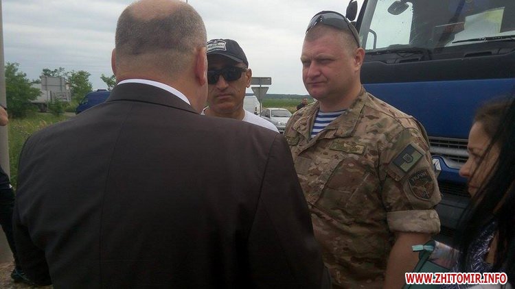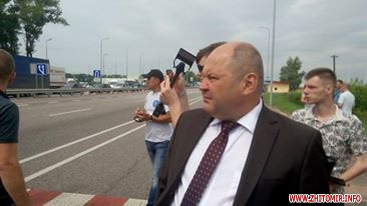 К месту перекрытия трассы также приехал начальник управления СБУ в Житомирской области Владимир Пахнюк.