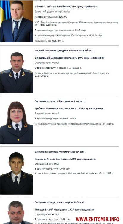 Як повідомляв Житомир.info, Віталія Мякішева призначили заступником прокурора Житомирської області 2 квітня 2015 року. В грудні 2015 року у прокурора Житомирської області Любомира Війтовича було два заступника - Олександр Білошицький та Віталій Мякішев. Генпрокурора Шокіна звільнили 29 березня 2016 року.