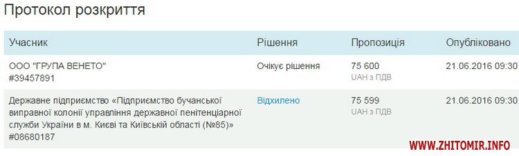Рішення конкурсної комісії про відхилення пропозиції підприємства бучанської колонії датоване 16-м червня.