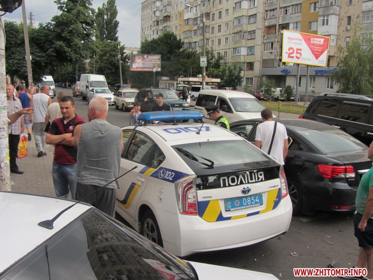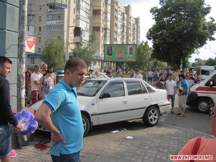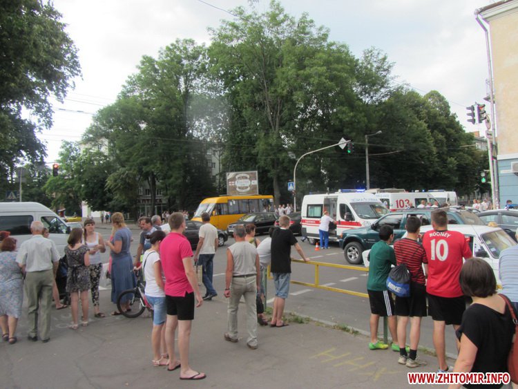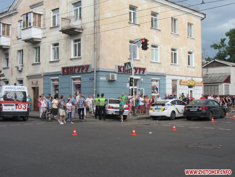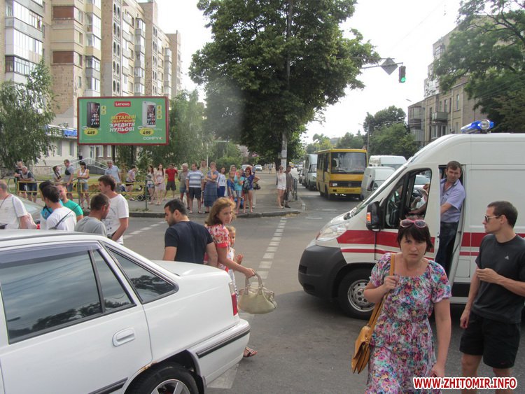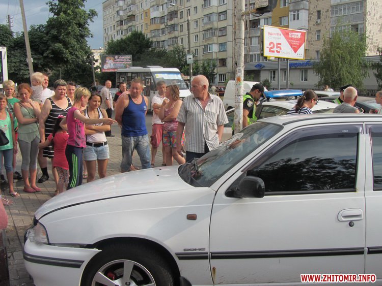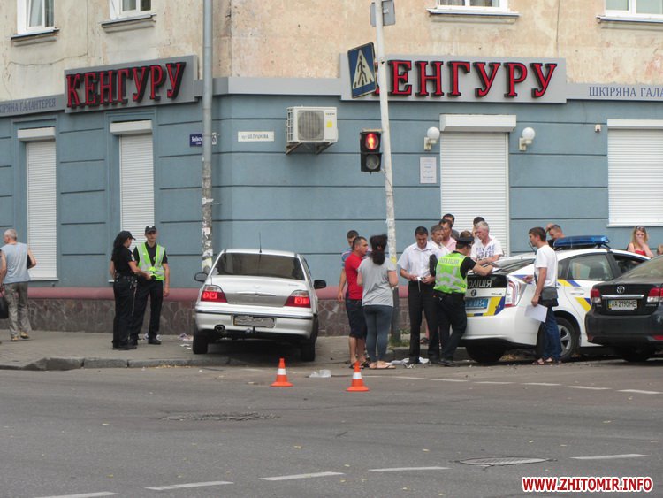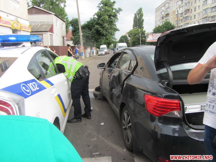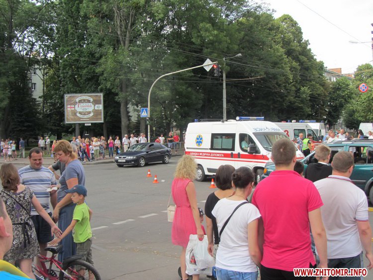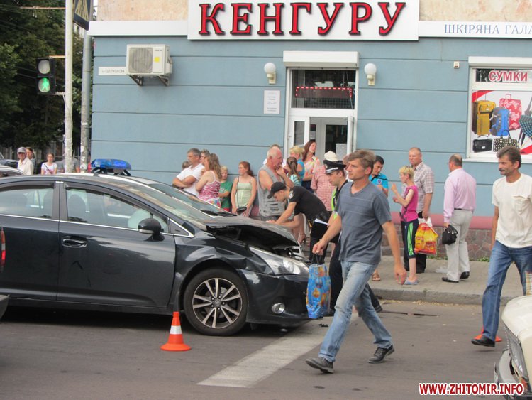 В Житомире на перекрестке улиц Киевская и Князей Острожских (до переименования – Шелушкова) 28 июня около 18.00 столкнулись автомобили Toyota Avensis и Daewoo Nexia, после чего Daewoo сбил молодую женщину с ребенком.