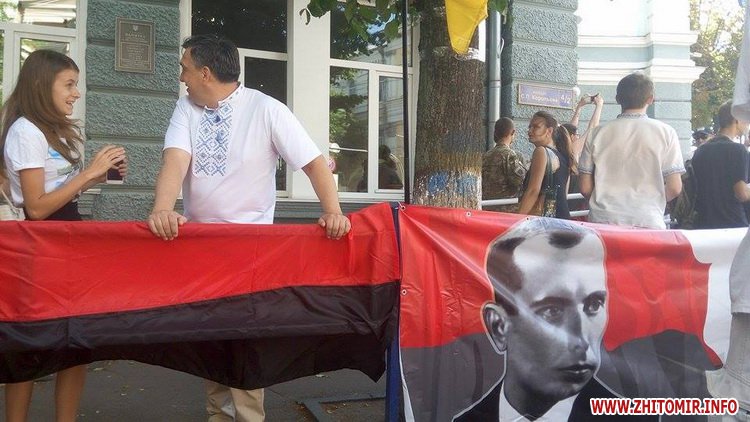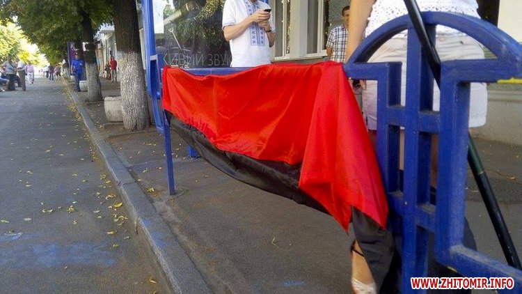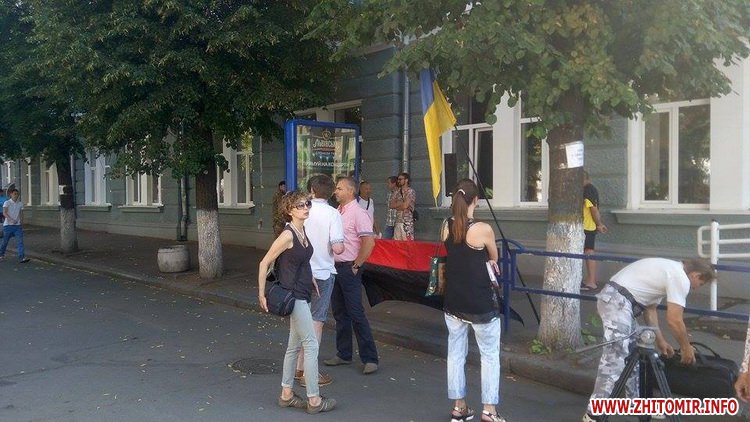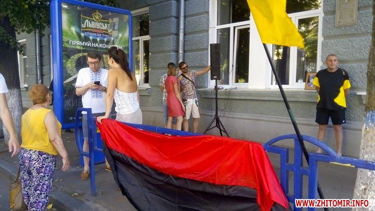 30 июня в центре Житомира одновременно проходят две акции: на площади Королева собрались несколько десятков человек на анонсированный ранее «Марш пустых кастрюль», а через дорогу, возле здания мэрии, около десяти активистов вывесили красно-черный флаг.