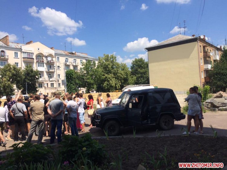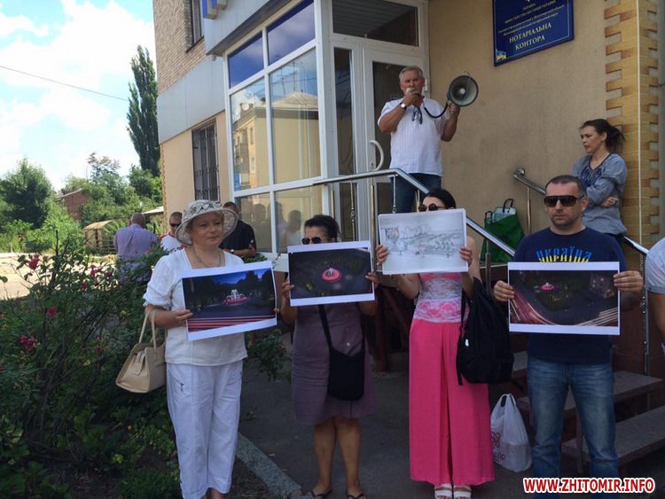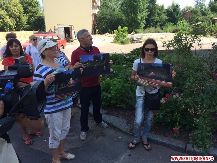У Житомирі на розі вулиць Київська-Театральна кілька десятків людей зібралися, щоб підтримати ідею створення на цьому місці скверу Героїв України.
