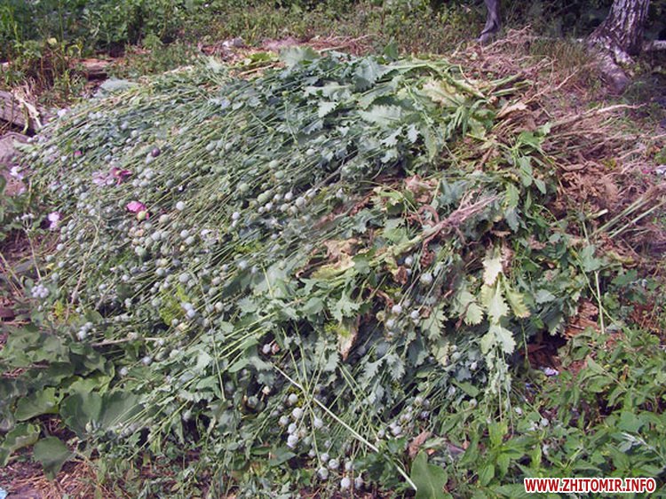 У смт Ємільчине Житомирської області на присадибній ділянці, яка належить 64-річній жительці районного центру, поліцейські помітили квіти маку та вже перецвілі голівки, що росли серед городини. Усі нарковмісні рослини спололи та вилучили.