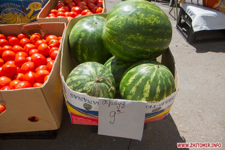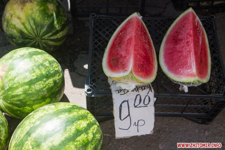 Зазначимо, що на житомирських ринках кавуни продають по 9-10 грн за кілограм, диня коштує 18-22 грн за кг. За літрову банку аґрусу просять - 20 грн, малини - 15-20 грн, смородини - 20 грн, порічки -10 грн, а за стакан чорниці - 6 грн.