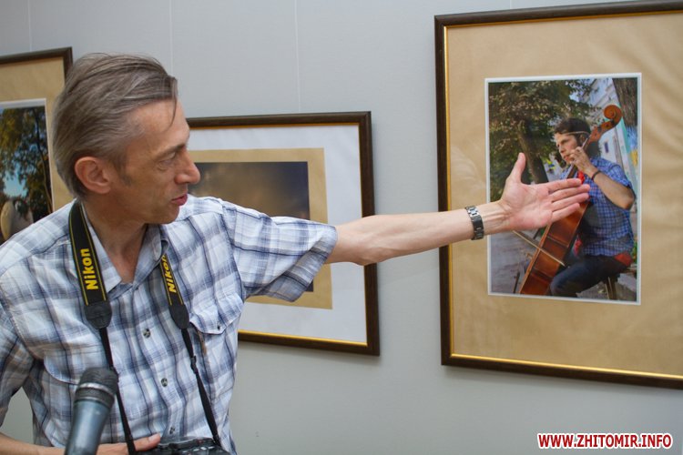 На персональній виставці фотохудожника представлені різні куточки Житомира і елементи життя самих житомирян. Деякі фото зроблені з гумором та іронією і підкреслюють філософський зміст робіт.