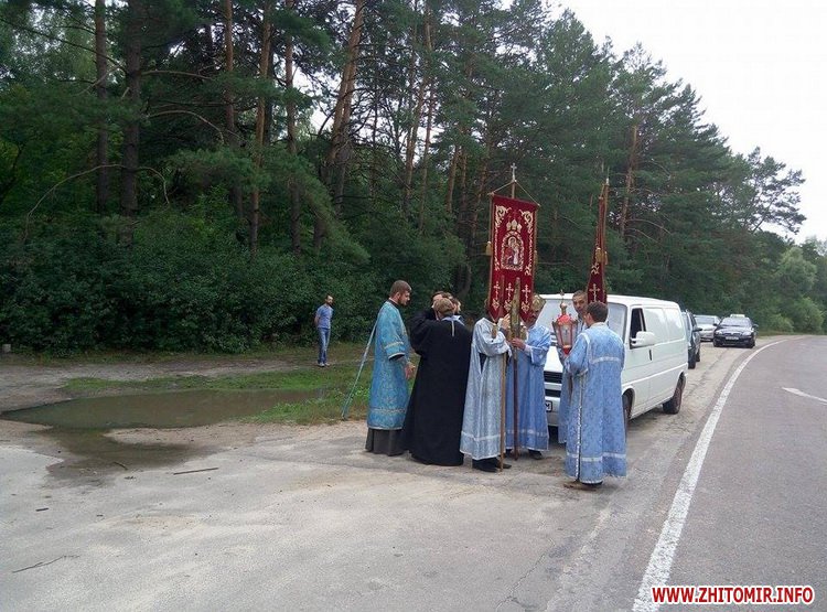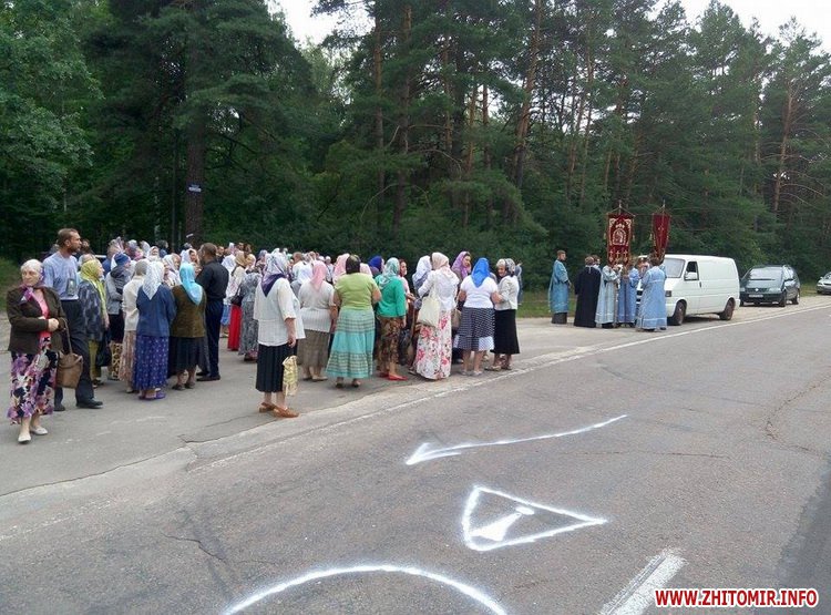 Зранку 18 липня близько 100 вірян зібралися на в’їзді до Житомира в районі гідропарку і готуються зустріти хресну ходу УПЦ МП.