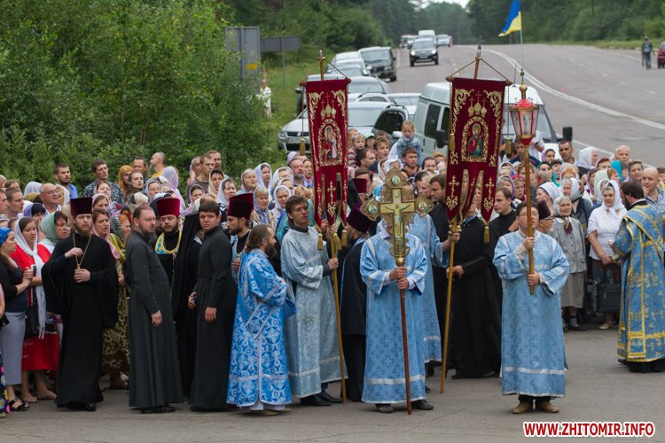 На в’їзді до Житомира в районі гідропарку зранку 18 липня православні житомиряни зустрічали хресну ходу УПЦ МП. Щоб долучитись до колони вірян, люди прийшли сім'ями та з іконами.