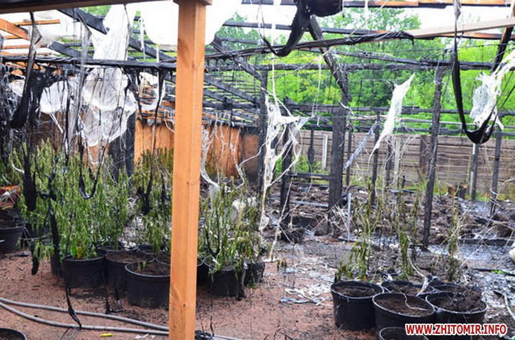 У селі Катеринівка Житомирського району після гасіння пожежі в одному з домогосподарств поліцейські виявили дві добре сховані теплиці з близько 700 рослинами конопель.
