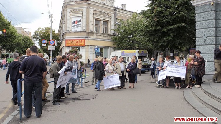 З плакатами в руках кілька десятків людей прийшли 21 липня до міської ради, щоб закликати депутатів звернути увагу на проблеми підприємця, який інвестував у реконструкцію зупинки на майдані Перемоги, втім так і не зміг завершити будівництво. Серед мітингувальників і будівельники, яких зачепила ця проблема.