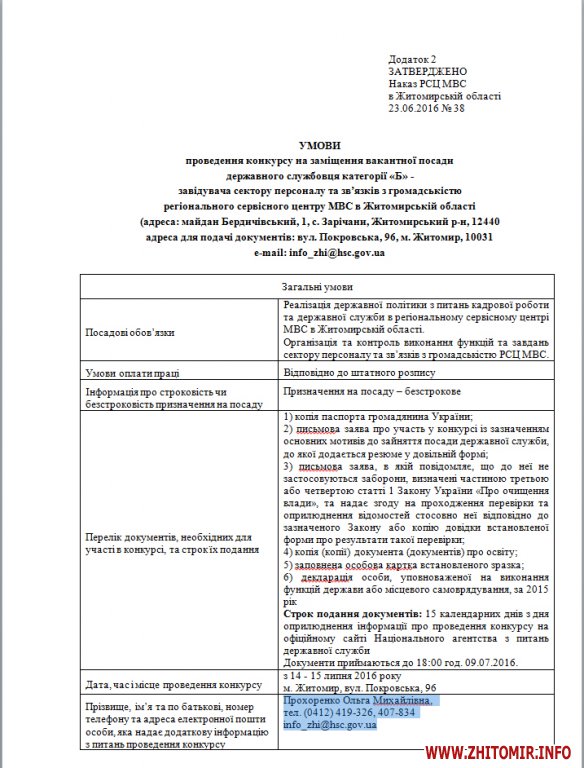 Керівника територіального сервісного центру в Житомирській області вже обрали. Виконуючим обов’язки начальника призначили Євгенія Прохоренко - молодшого брата колишнього заступника начальника Житомирського управління ДАІ, а нині начальника управління безпеки дорожнього руху Нацполіції України, полковника Івана Прохоренко. Документи на заміщення посад учасники конкурсу надсилають дружині Івана Прохоренко – Ользі Прохоренко, яка є працівником сектору кадрового забезпечення сервісного центру. Цей факт викликав занепокоєння у житомирських активістів, які підозрюють, що у конкурсному відборі та кадрових призначенням може бути корупційна складова, але у сервісному центрі таку можливість відкидають.