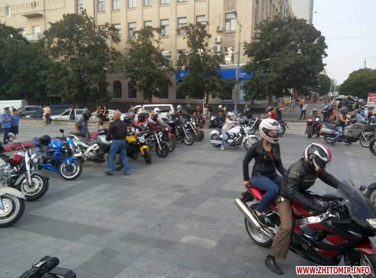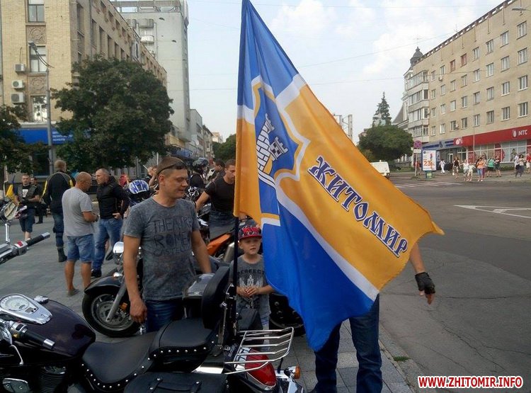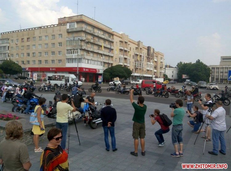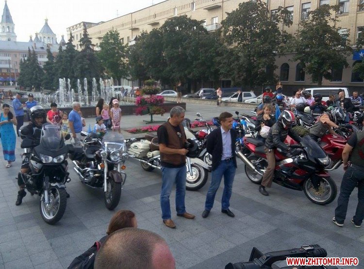 Ввечері 27 липня біля майдану Соборного у Житомирі зустрічали учасників мотопробігу єдності, який стартував 26 липня в Ужгороді.