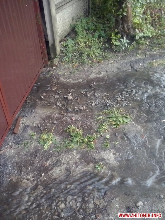 «В районе 19:00, когда начался ливень, затопило перекресток Проспекта Независимости и ул. Покровской, вся вода побежала в частные сектора по адресу Покровская 80, 82, 85, 87, и река полилась так, что куски асфальтного покрытия пешеходной части сорвало и понесло во дворы частного сектора. Ливневая система не справляется, некоторые решетки просто засыпаны и забиты досками, дождевой воде некуда деваться. Я проживаю в одном из этих домов, когда я увидел что вода хлынула во двор и начала подступать к дверям моего дома, дома соседей, то набрал номер нашей доблестной полиции и попросил помощи, совета к кому обратиться и попросил вызвать наряд полиции, чтоб зафиксировать факт подтопления участка. Мне ответили – ожидайте патруль, прошло пол часа а патруля нет, я снова позвонил на 102, мне сказали ожидать, в итоге проехало мимо три патруля и никто не остановился», - пишет житомирянин Михаил, который прислал фото после ливня 29 июля.