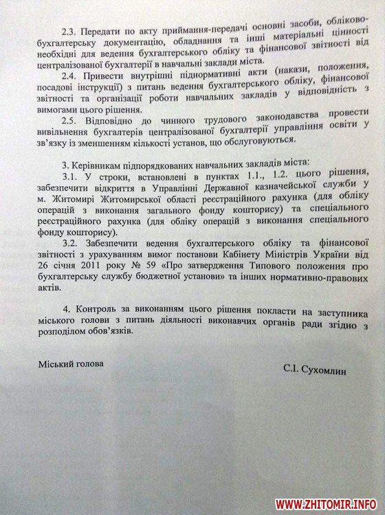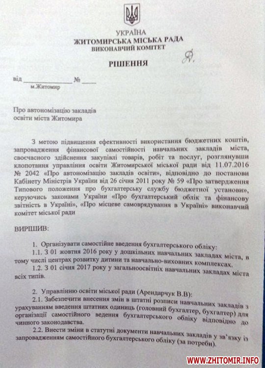 Житомирським школам і дитсадкам дозволили самостійне ведення бухгалтерського обліку.